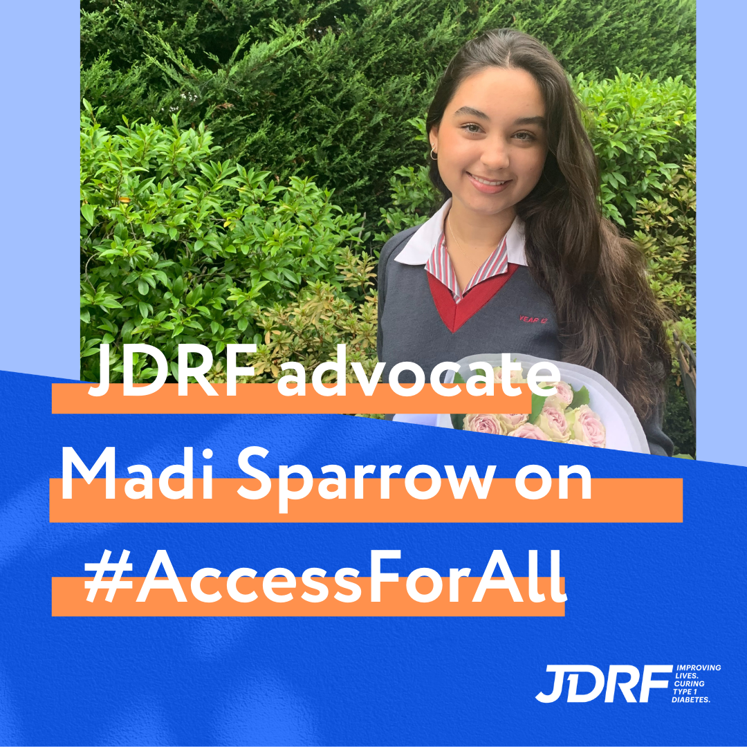 At just seven years old Madi was diagnosed with Type 1 Diabetes (T1D), a relatively young diagnosis. Madi says she felt very different at school in the early years, and didn’t really understand her diagnosis. At the end of 2018, Madi wanted to connect with other young people with similar experiences, so joined the JDRF as an advocate.