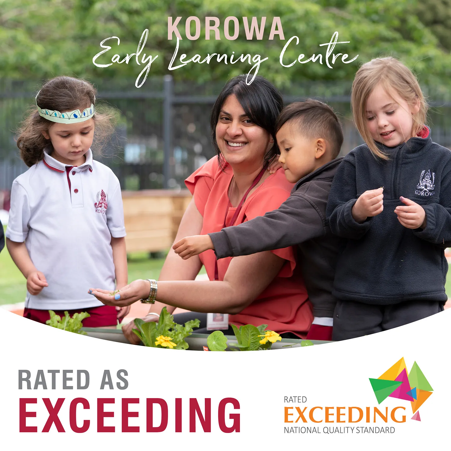We are thrilled to announce Korowa’s Early Learning Centre has been rated as ‘Exceeding’ National Quality Standards (NQS) for their Assessment and Rating from The Australian Children’s Education & Care Quality Authority (ACEQUA). The NQS is informed by research around best practice, is designed to encourage ongoing quality improvement and includes assessment and rating of services in seven key areas. Services are assessed against the seven quality areas of the National Quality Standard: