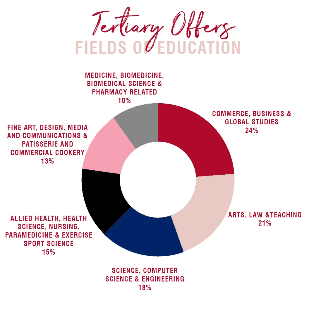Our students have continued to follow their passions, selecting courses across a wide variety of areas including for direct-entry Medicine, Commerce, Arts, Science, Biomedicine, Law, Engineering, and Design.