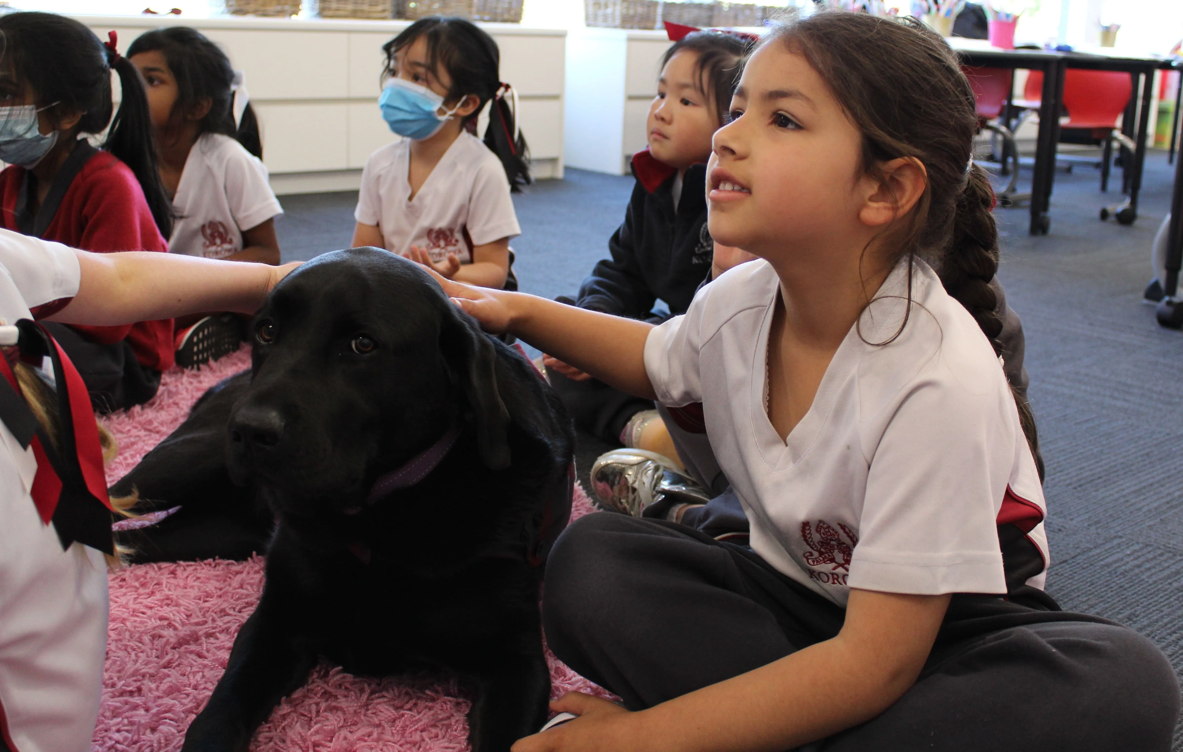 A reclassified Guide Dog, Ivy was specifically matched to Korowa for her gentle and calm nature.When she’s not at school, Ivy lives with Shannon, Korowa’s Learning Support Coordinator.Most days, Ivy can be found ‘working’ in various classes, supporting small groups of students in our Learning Commons or socialising outside with staff and students. She especially loves going to the Prep room for extra pats!Along with being there for support, Ivy has also assisted our Korowa community through things such as: